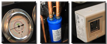 制冷系統:全封閉風冷單級壓縮制冷方式/原裝法國“泰康”/全封閉風冷復迭壓縮制冷方式