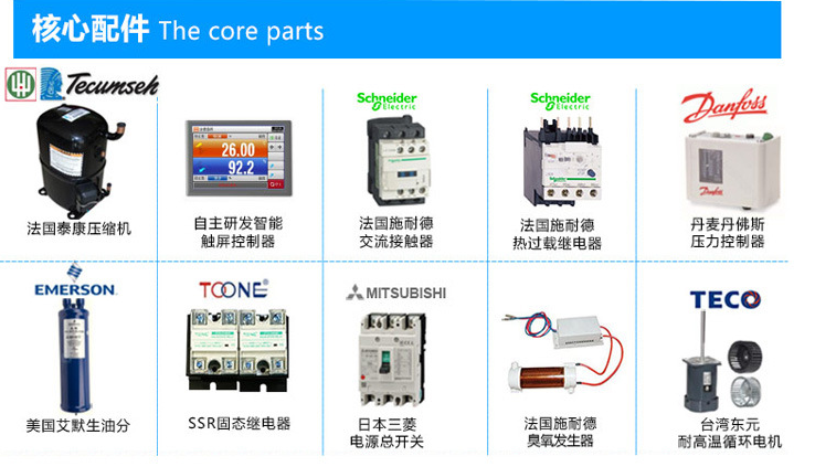 3、制冷及電控關鍵配件均采用國際知名品牌產品,使設備的整體質量得到了提升和保證;